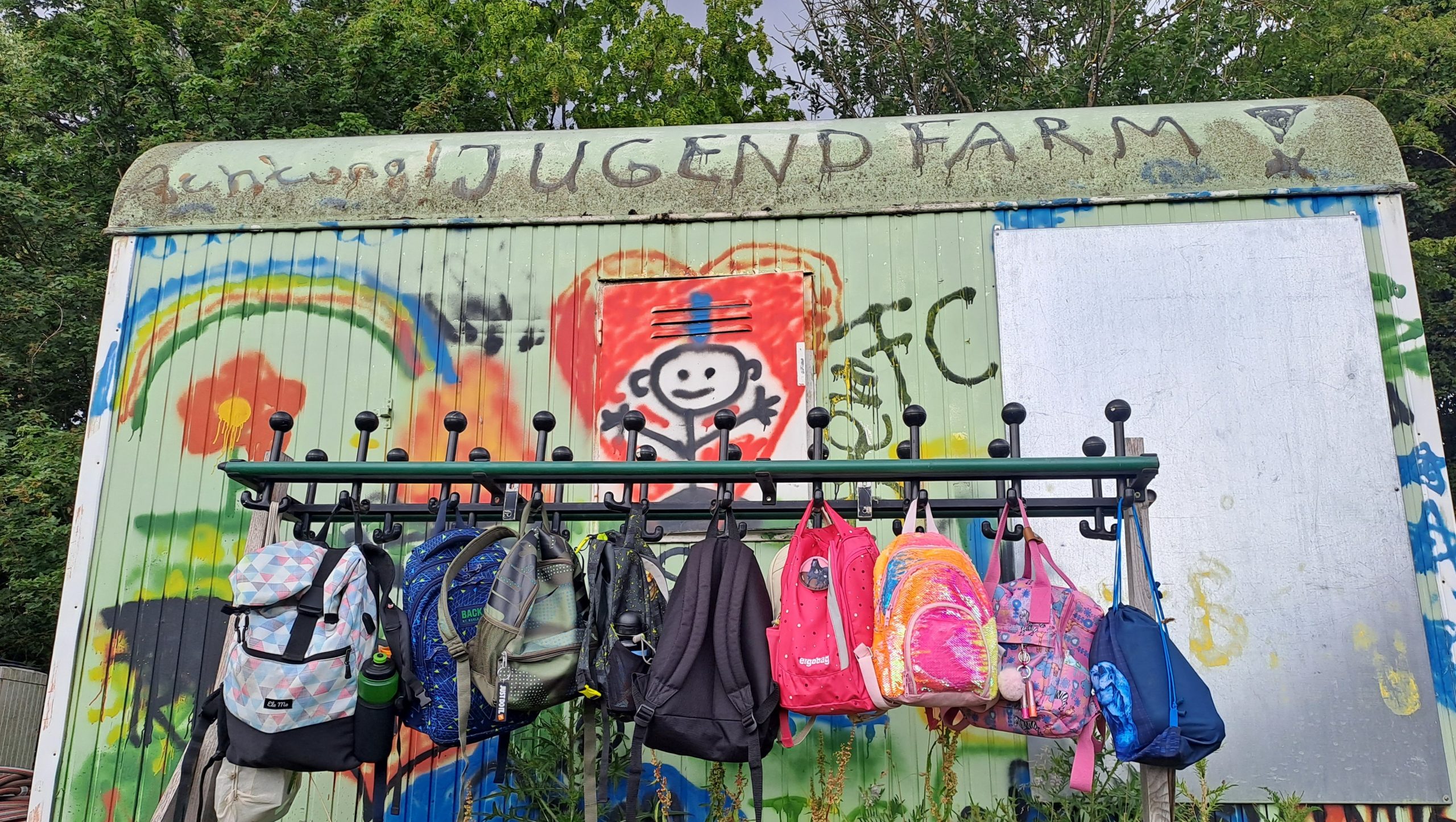 Auf der Jugendfarm gab es viel zu entdecken: Hasen, Hühner und Schafe konnten beobachtet und teilweise sogar gefüttert und gestreichelt werden. Aus Specksteinen wurden mithilfe von Säge, Feile und Bohrer kleine Kunstwerke, der Bauwagen lud zum Entspannen und das große Gelände zum Spielen und Toben ein. So nah an der Zeit wie im Flug. Vielen herzlichen Dank an Alex und sein Team von der Jugendfarm für diesen tollen Vormittag.