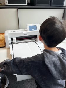 Anschließend kam der Plotter zum Einsatz, der die Texte auf spezielle Folien übertrug. Danach entfernten die Kinder vorsichtig die überschüssige Folie, sodass nur noch die Schrift sichtbar blieb – eine Aufgabe, die Geduld und Fingerspitzengefühl erforderte.
