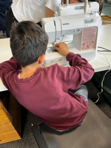 Nach einer kurzen Einführung ins Nähen ging es dann an die Nähmaschinen. Mit großer Neugier und auch ein wenig Aufregung nähten die Kinder ihre Stoffherzen zusammen. Für viele war es das erste Mal an einer Nähmaschine, doch mit Unterstützung gelang es allen, ein eigenes Herz zu gestalten.