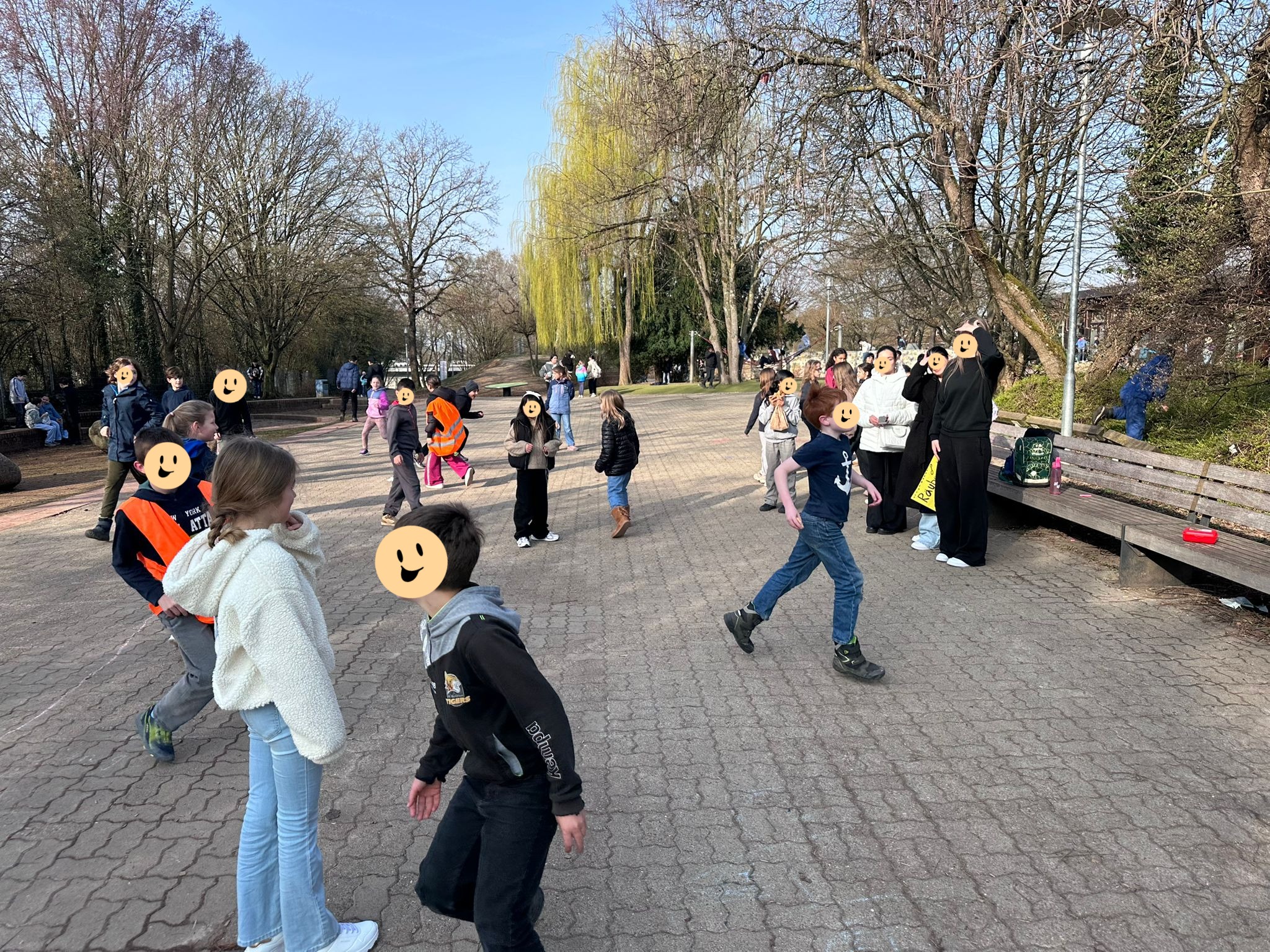 Im Rahmen des AES-Unterrichts führte die Klasse 8 der Salier-Gemeinschaftsschule ein kleines Projekt mit Grundschülern durch. Ziel des Projekts war es, verschiedene Pausenspiele vorzubereiten und diese gemeinsam mit den jüngeren Kindern in der Pause zu spielen.