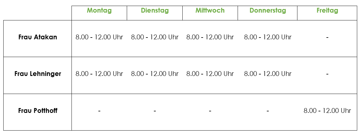 Hier finden Sie die aktuellen Sprechzeiten der einzelnen Sekretärinnen: